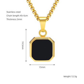 Titanium Steel Hip-hop Turquoise Black square Pendant for Men and Women, 18K Gold Plated Fashion Necklace Accessory